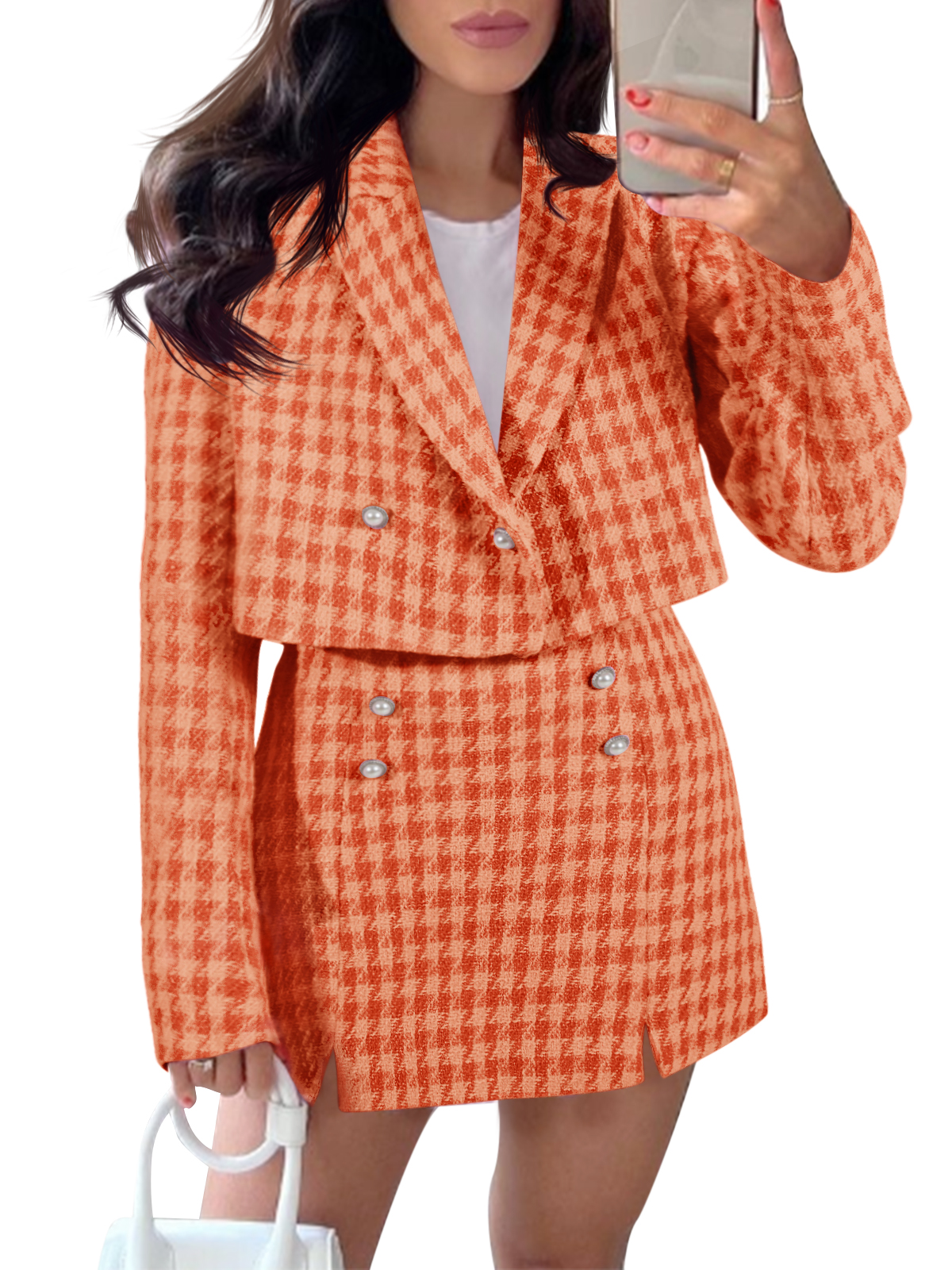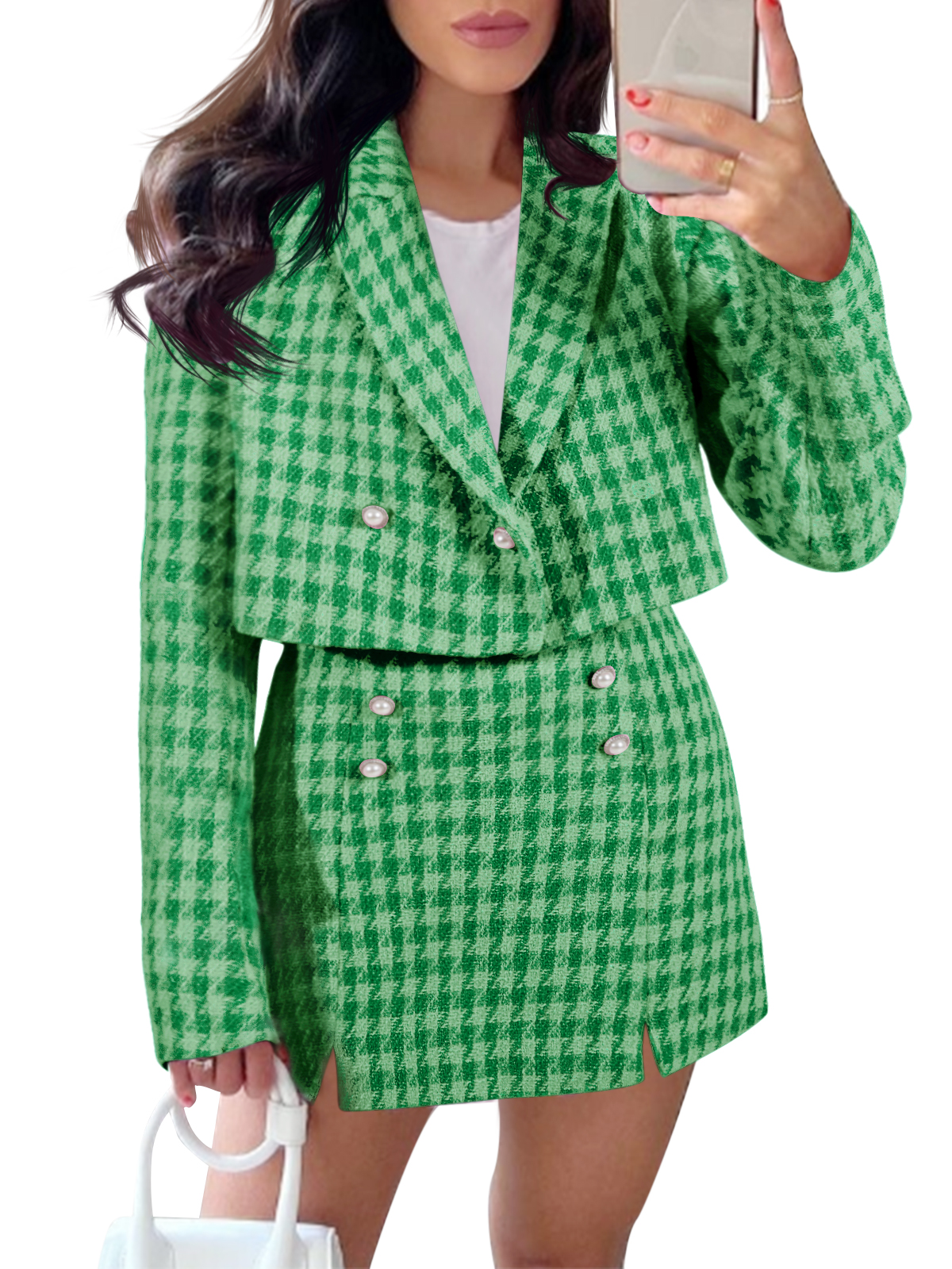 Cicy Bell Womens 2 Piece Tweed Blazer Shorts Sets Long Sleeve Double Breasted Suit Jackets Business Outfit